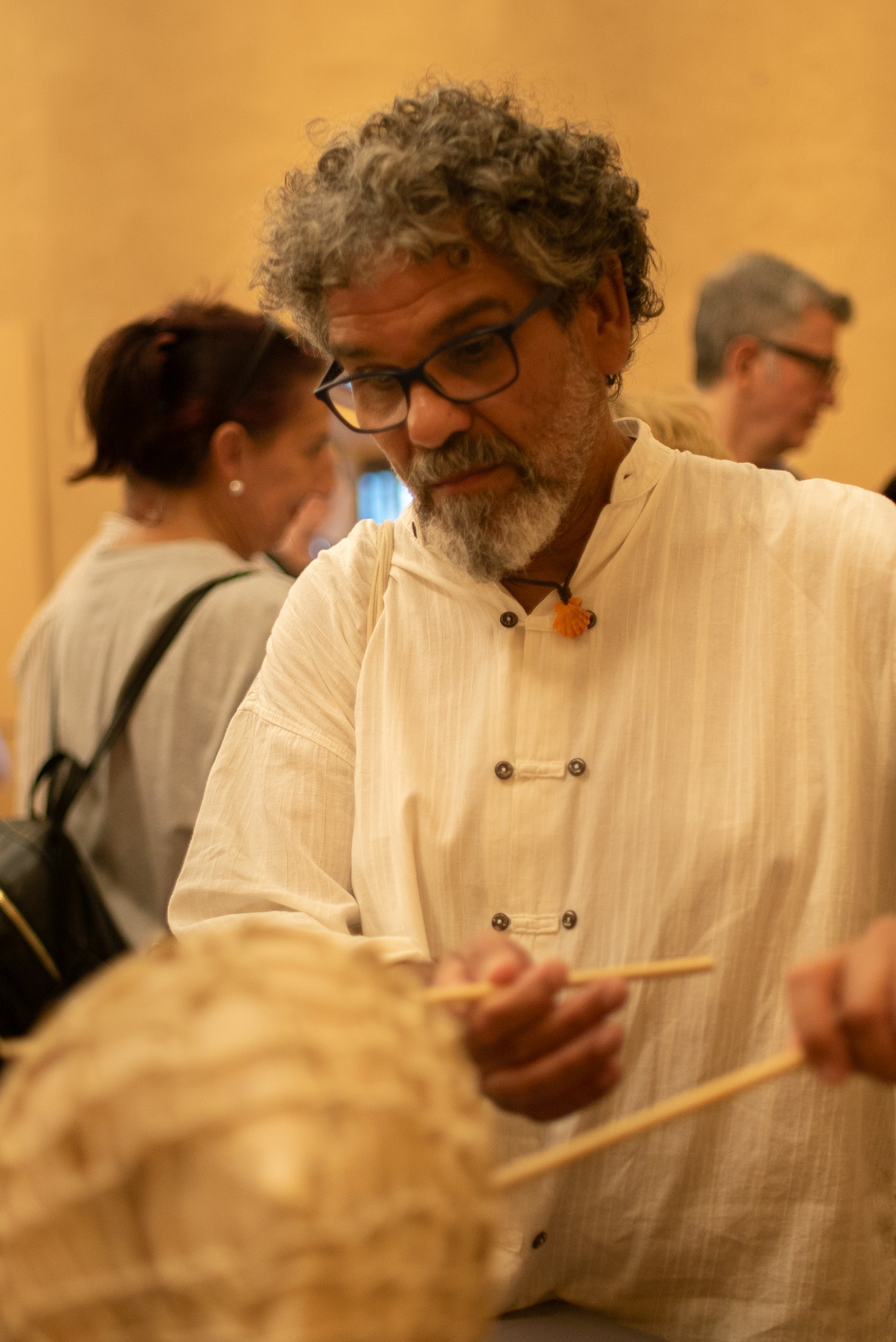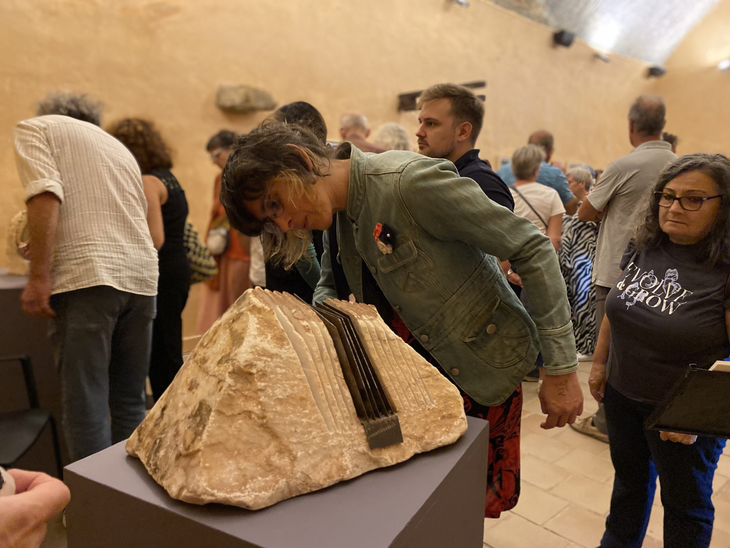 Ya en el museo, a las 19:30 h, se inauguró la exposición “Toquemos las piedras” de Lucia Beijlsmit, una propuesta concebida para personas invidentes que invitó al público a explorar esculturas en piedra a través del tacto. La exposición tuvo una gran acogida y subrayó el carácter inclusivo del ciclo, permitiendo una experiencia sensorial única.