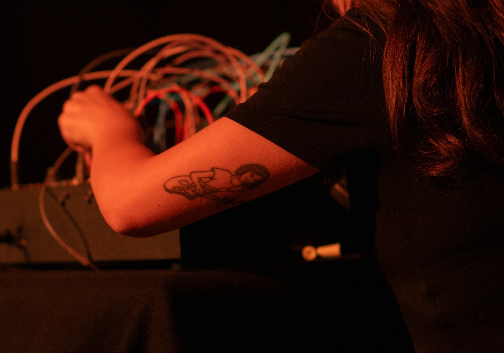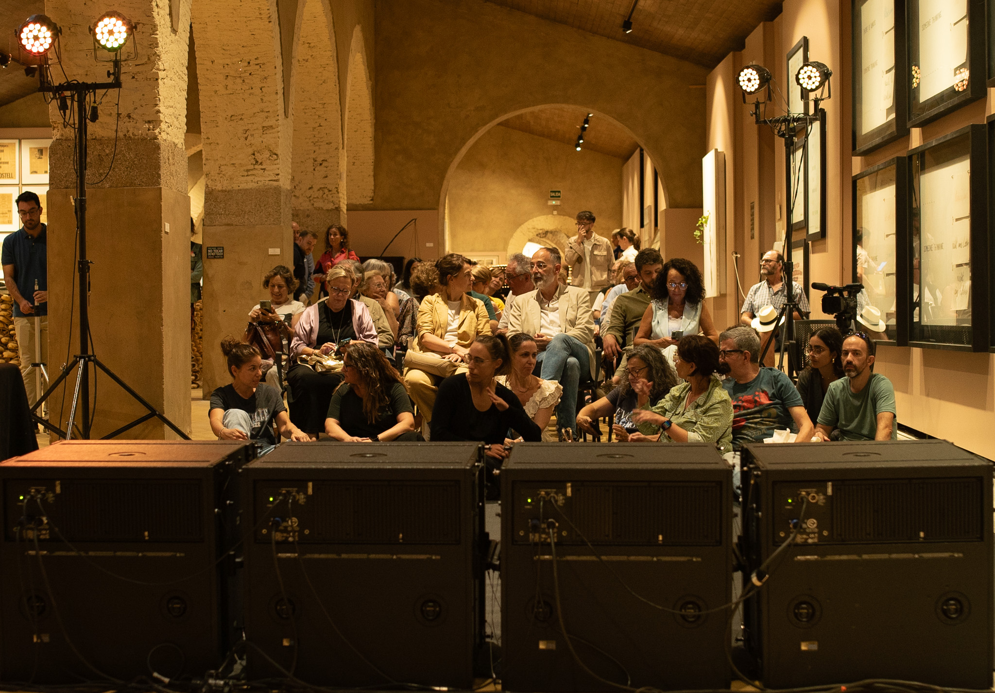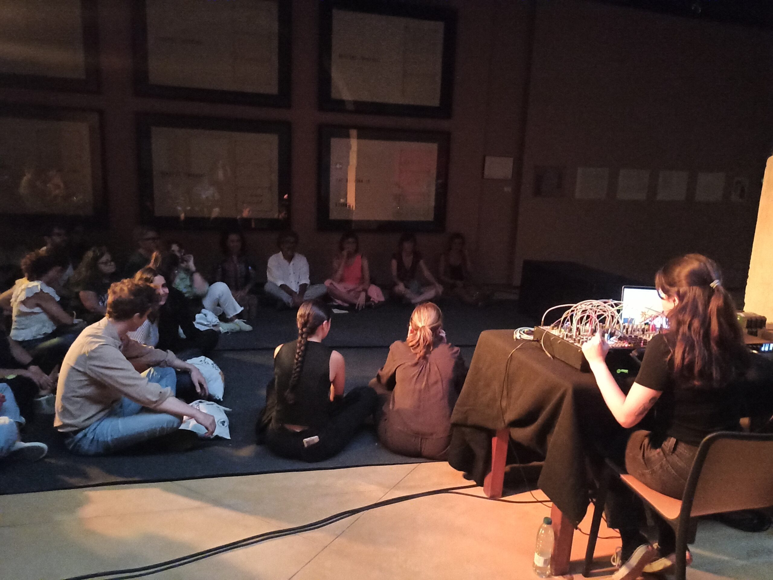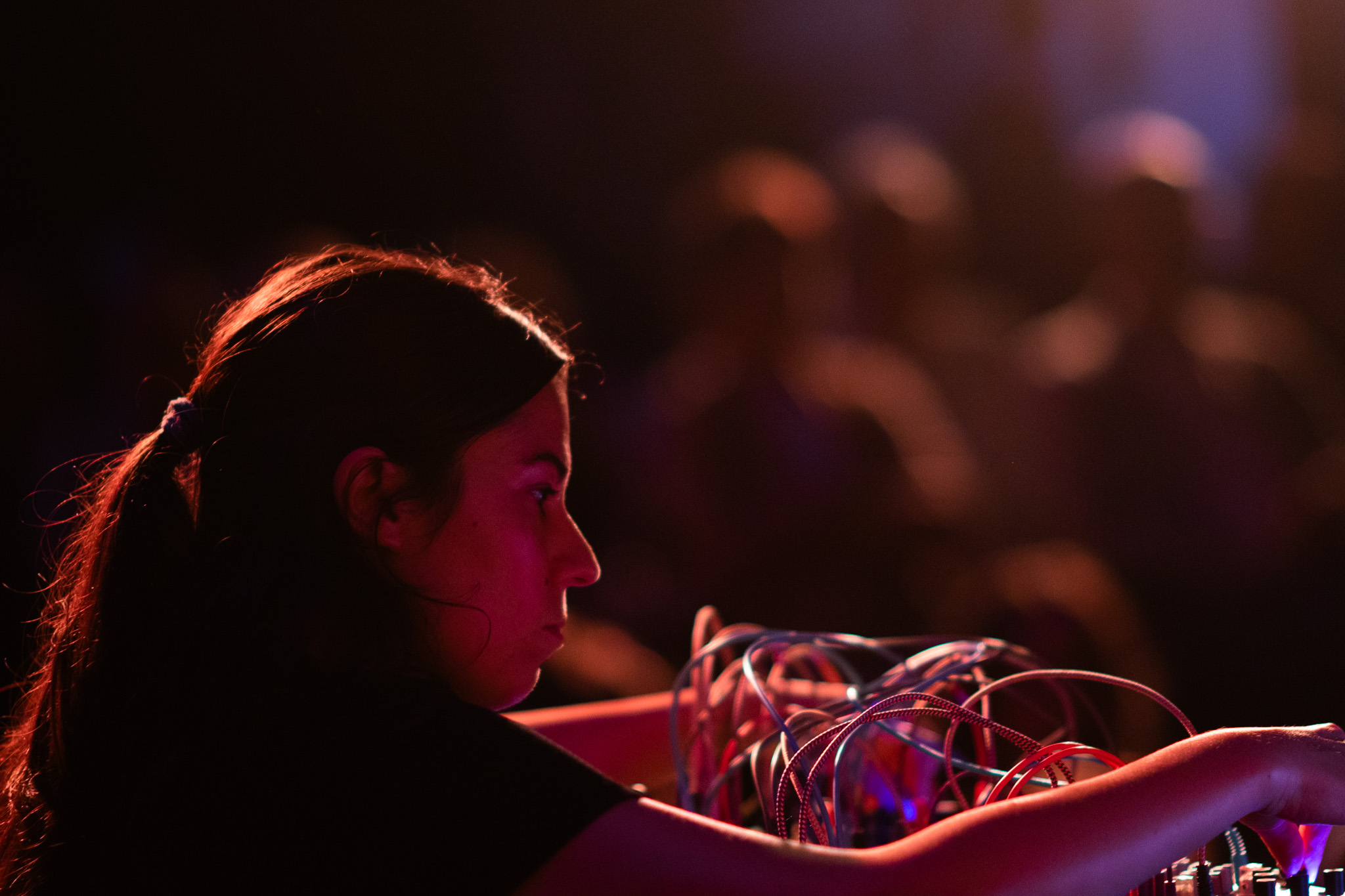 A las 20:30 h, el protagonismo fue para la música de sensaciones con el concierto de Rita Silva, diseñado para personas sordas. La artista portuguesa empleó sintetizadores, electrónica y subwoofers en lugar de altavoces convencionales, logrando que las vibraciones graves recorrieran el espacio y los cuerpos de los asistentes. La especial colaboración de la Asociación de Personas Sordas de Cáceres reforzó el carácter participativo de la velada, favoreciendo un entorno accesible y compartido.